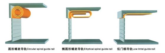 根據(jù)現(xiàn)場土建結(jié)構(gòu)可分為:渦輪吸入式、橢圓吸入式、重直提升式、90度標(biāo)準(zhǔn)拐彎提升式或更多的軌道方式,標(biāo)準(zhǔn)為渦輪吸入式和橢圓吸入式。